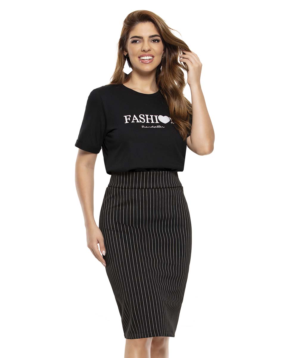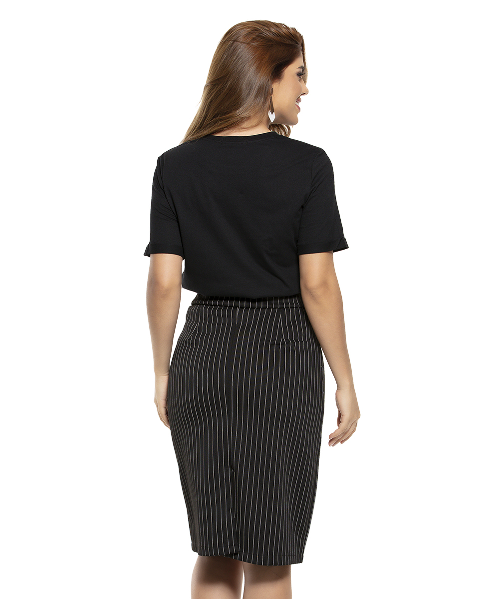 • Conjunto 2 peças (Blusa e short em crepe duna risca de giz)