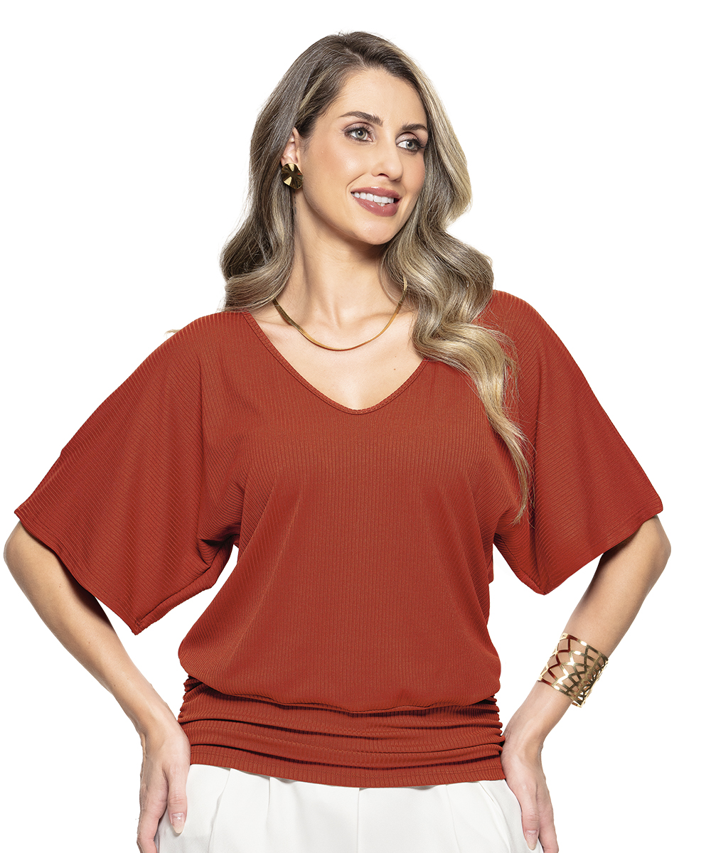 • Macaquinho com transpasse em malha de viscose com fios dourados