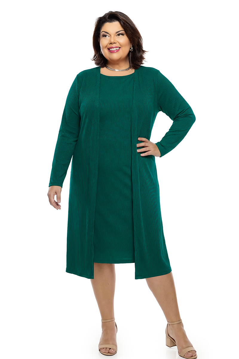 Conjunto 2 peças (Cardigan e vestido em malha ribana)