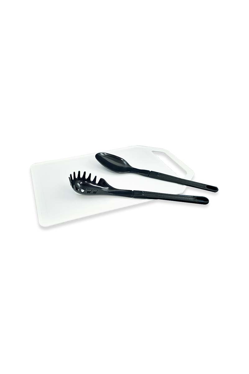 Jogo tábua para corte e talher em plástico