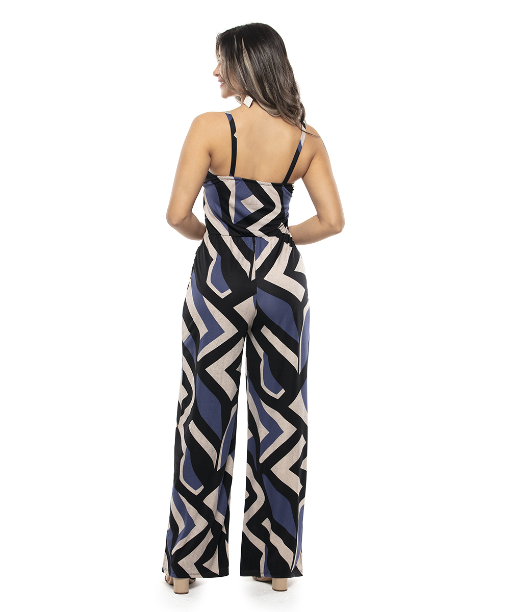 Macacão pantalona com transpasse em crepe duna