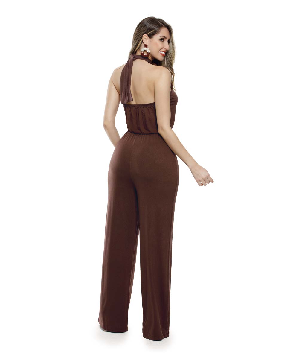 Macacão pantalona com transpasse em malha fluid