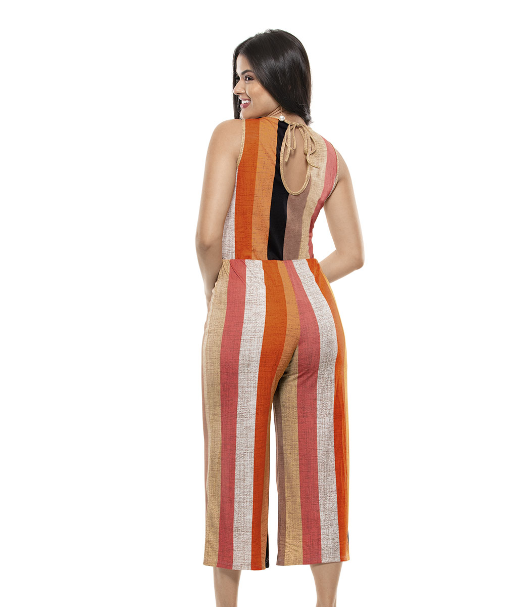 Macacão com decote em V, estilo regata, com abertura nas costas para