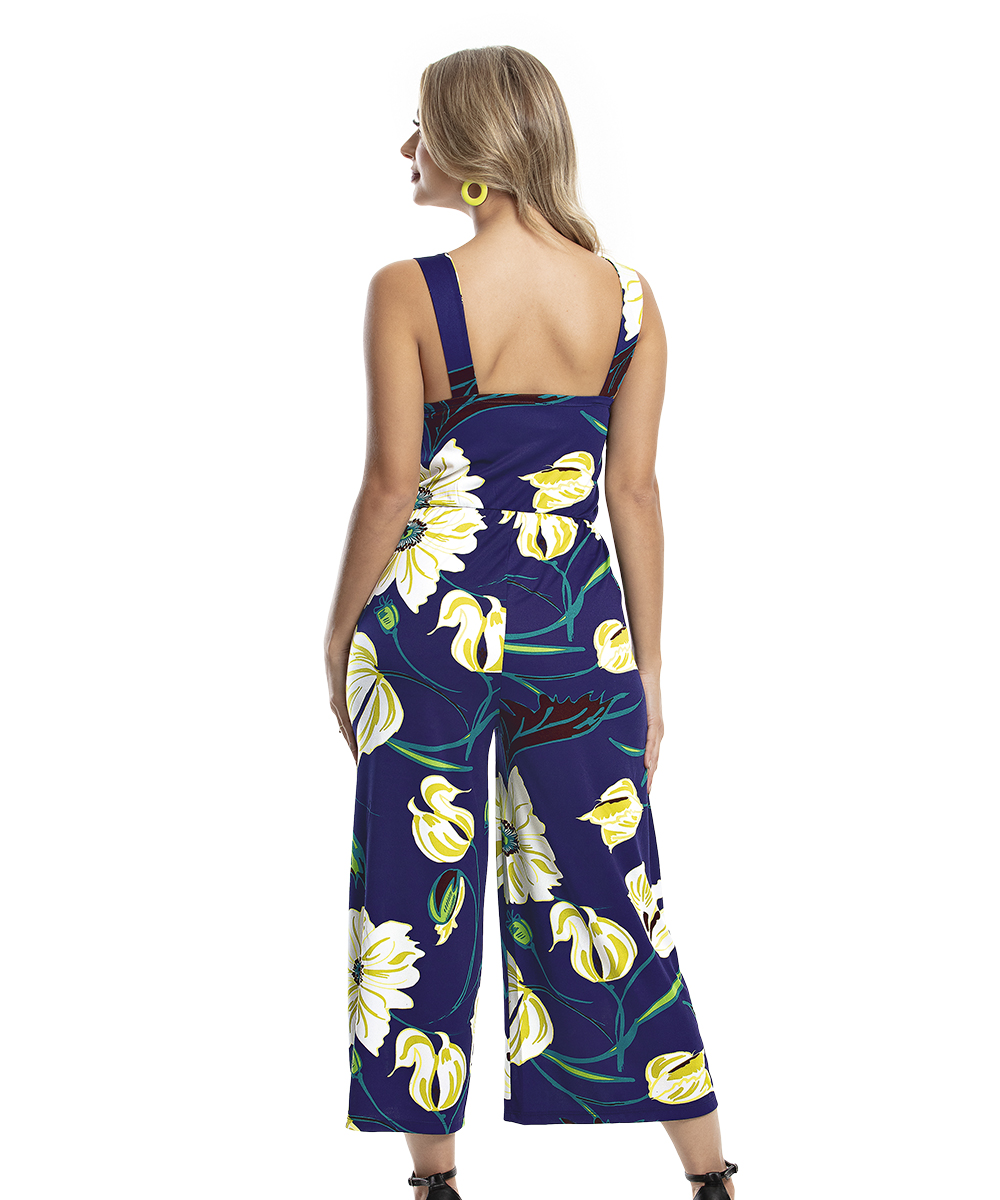 Macacão pantacourt, possui alças, decote reto e busto forrado. Modelagem