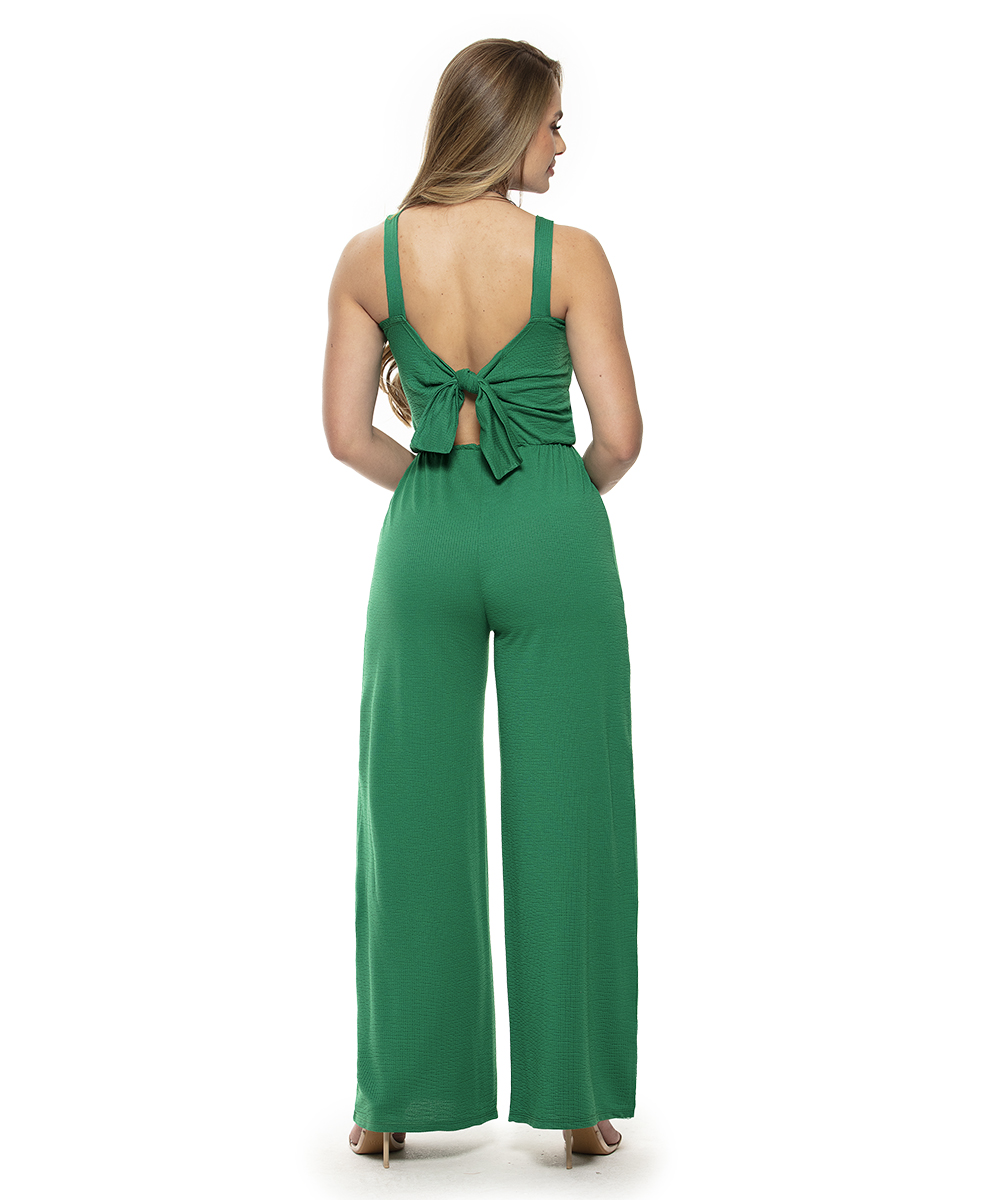Macacão pantalona em malha crepe anarruga