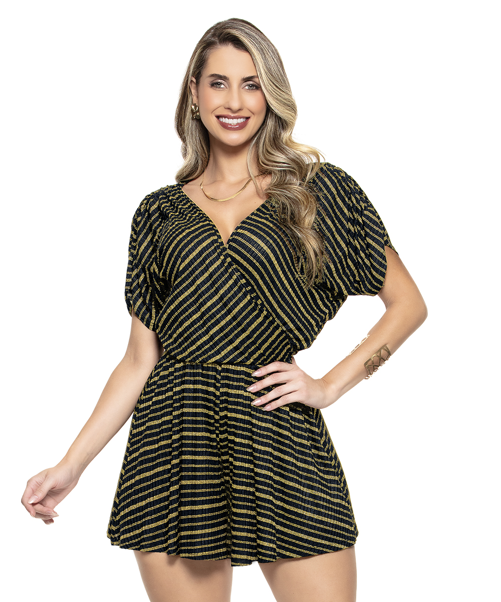 Macaquinho com transpasse em malha de viscose com fios dourados