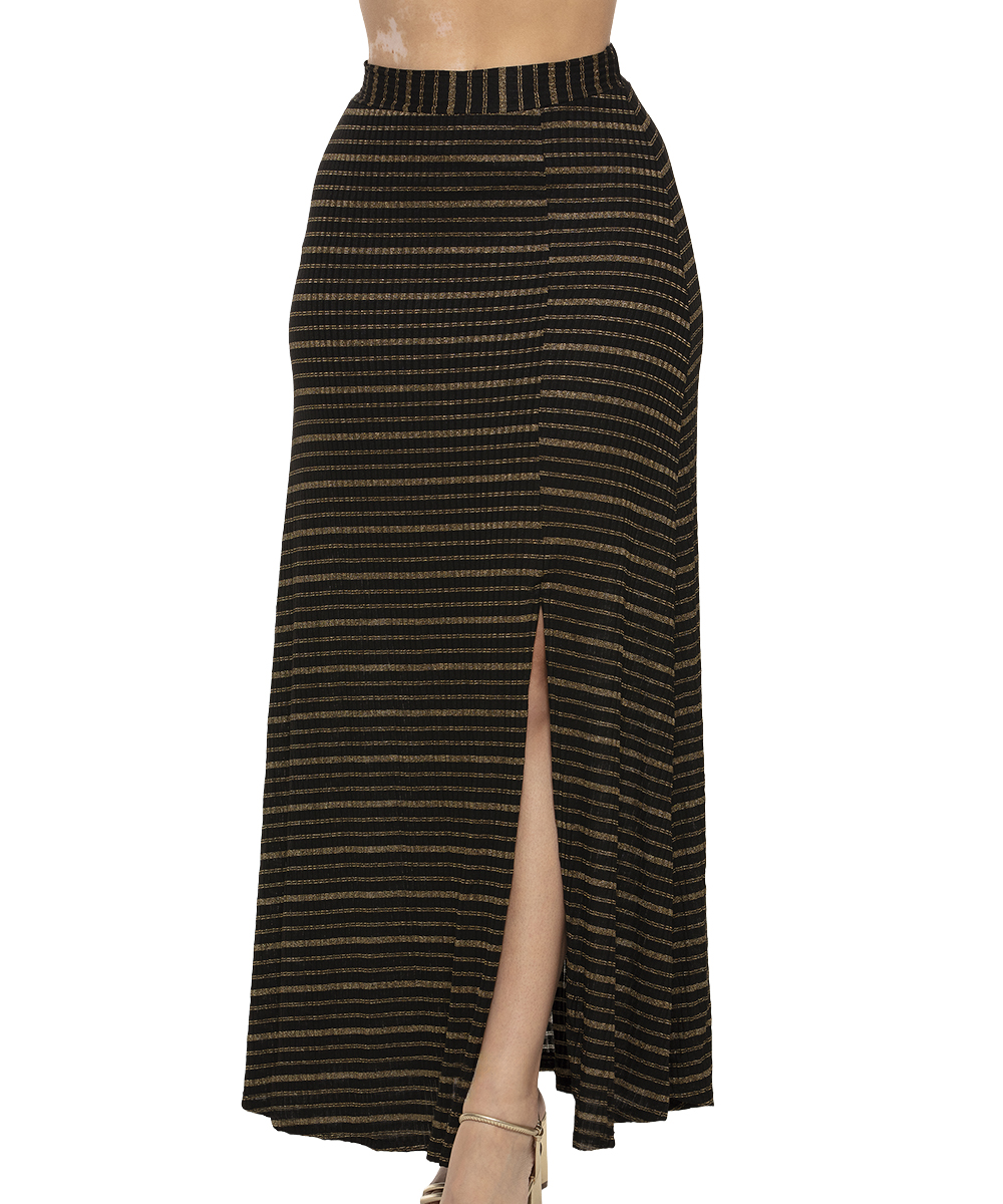 Saia longa em malha de viscose com fios dourados