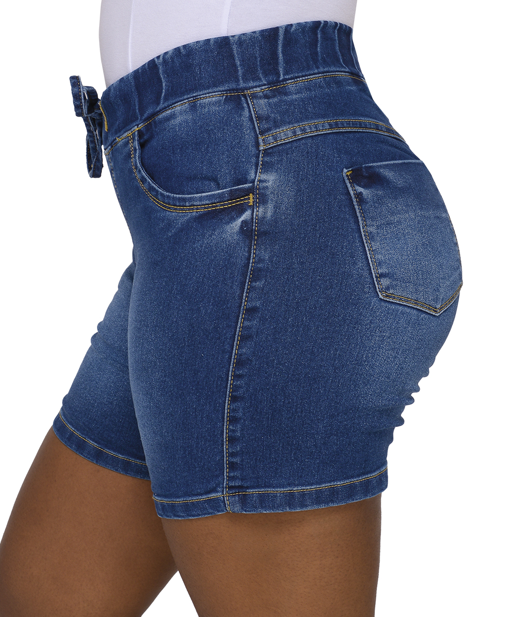 Short jeans meia coxa feminina