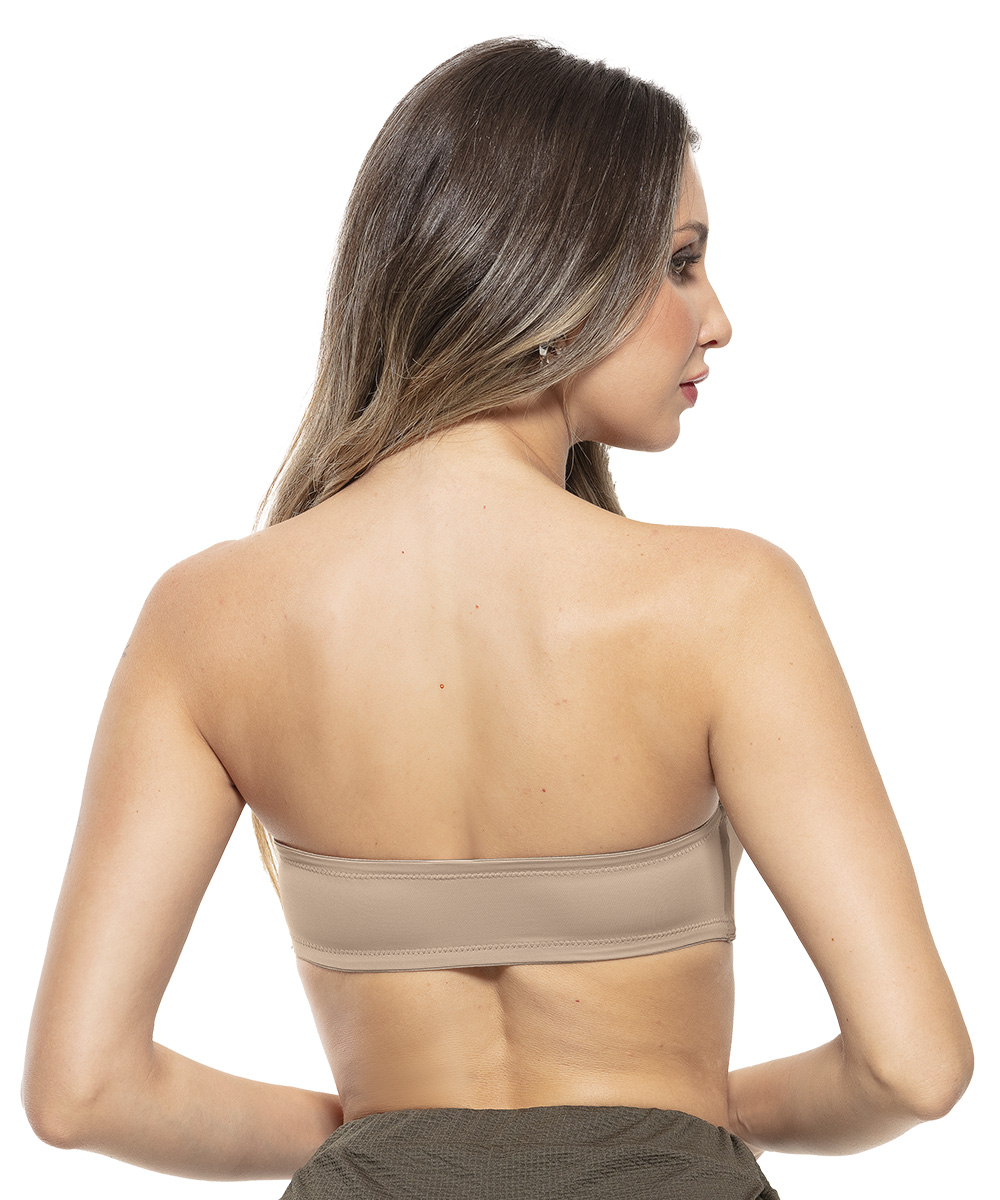 O soutien tomara-que-caia de silicone tem bojo único e aro, oferecendo
