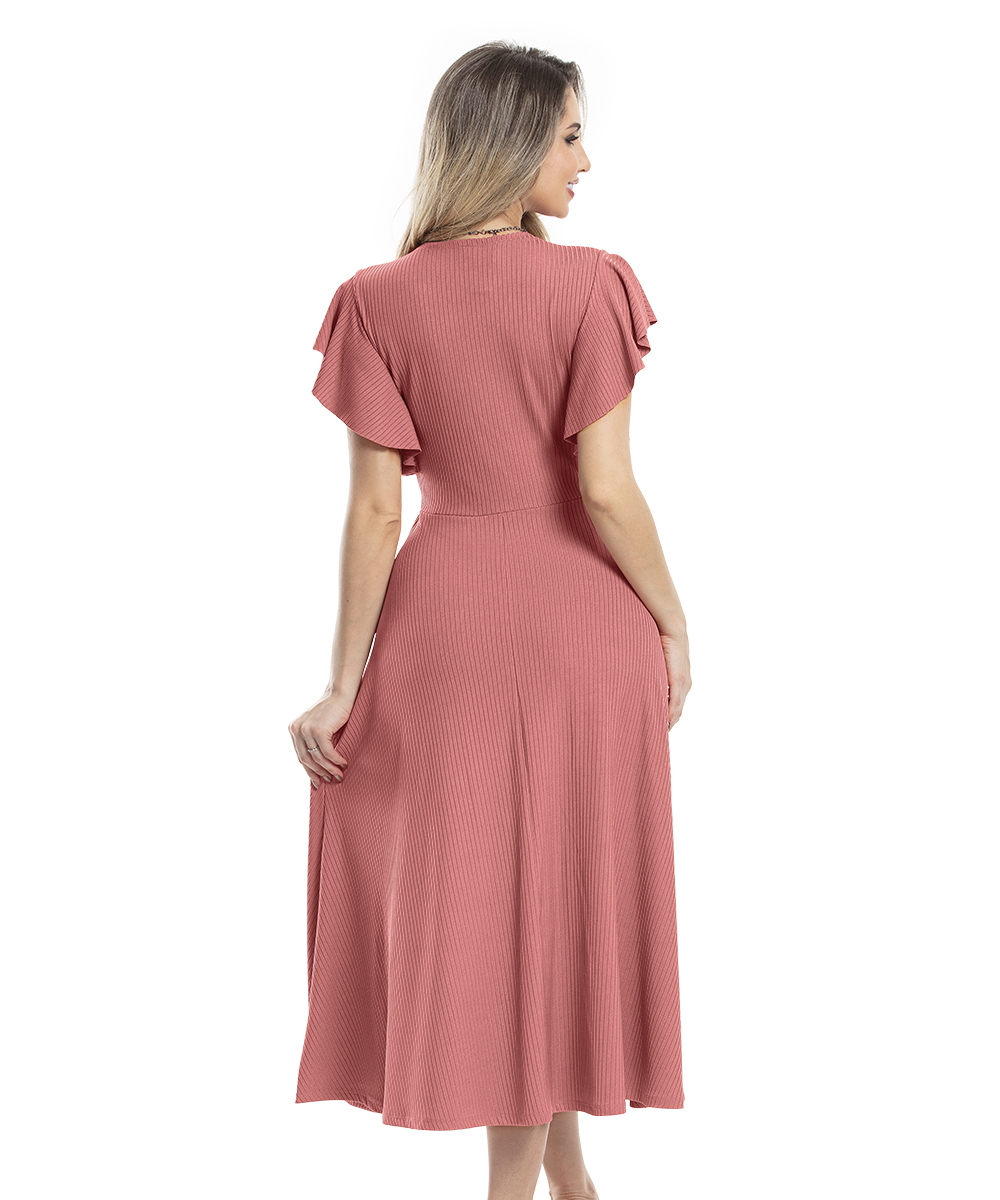 Vestido com transpasse em malha ribana