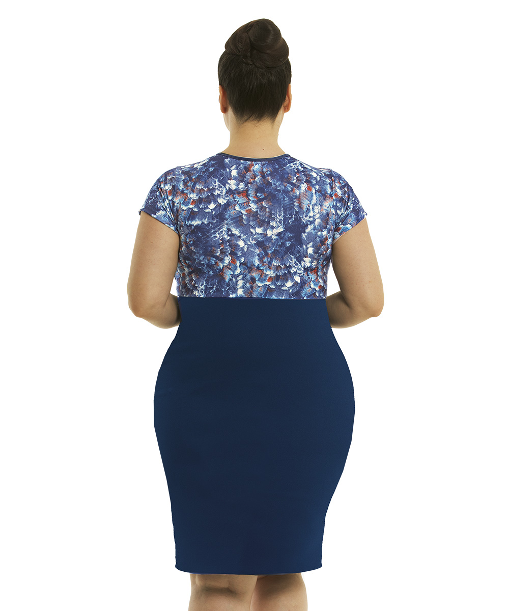 Vestido em helanca e jersey acetinado