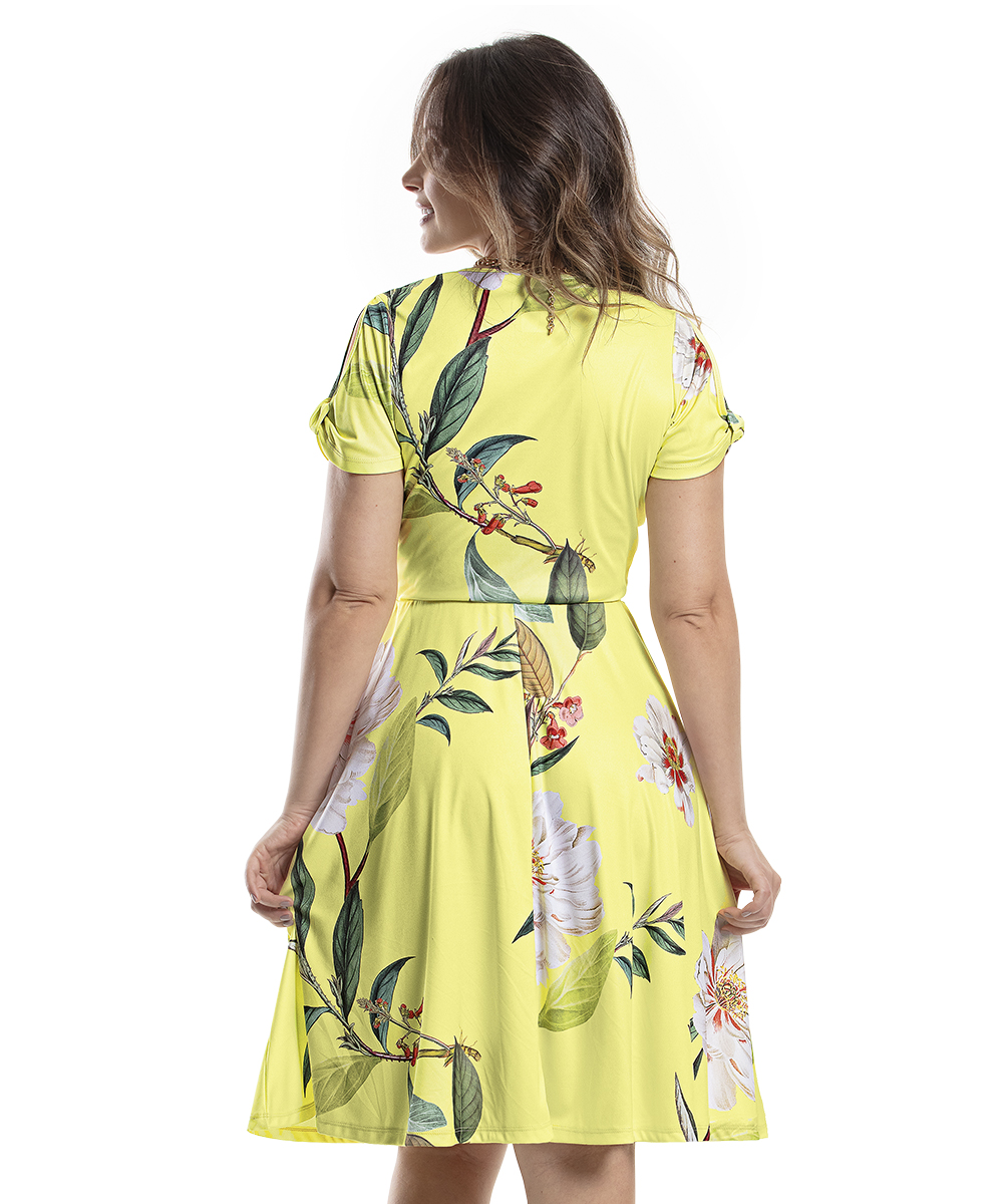 Vestido com transpasse em helanca e renda