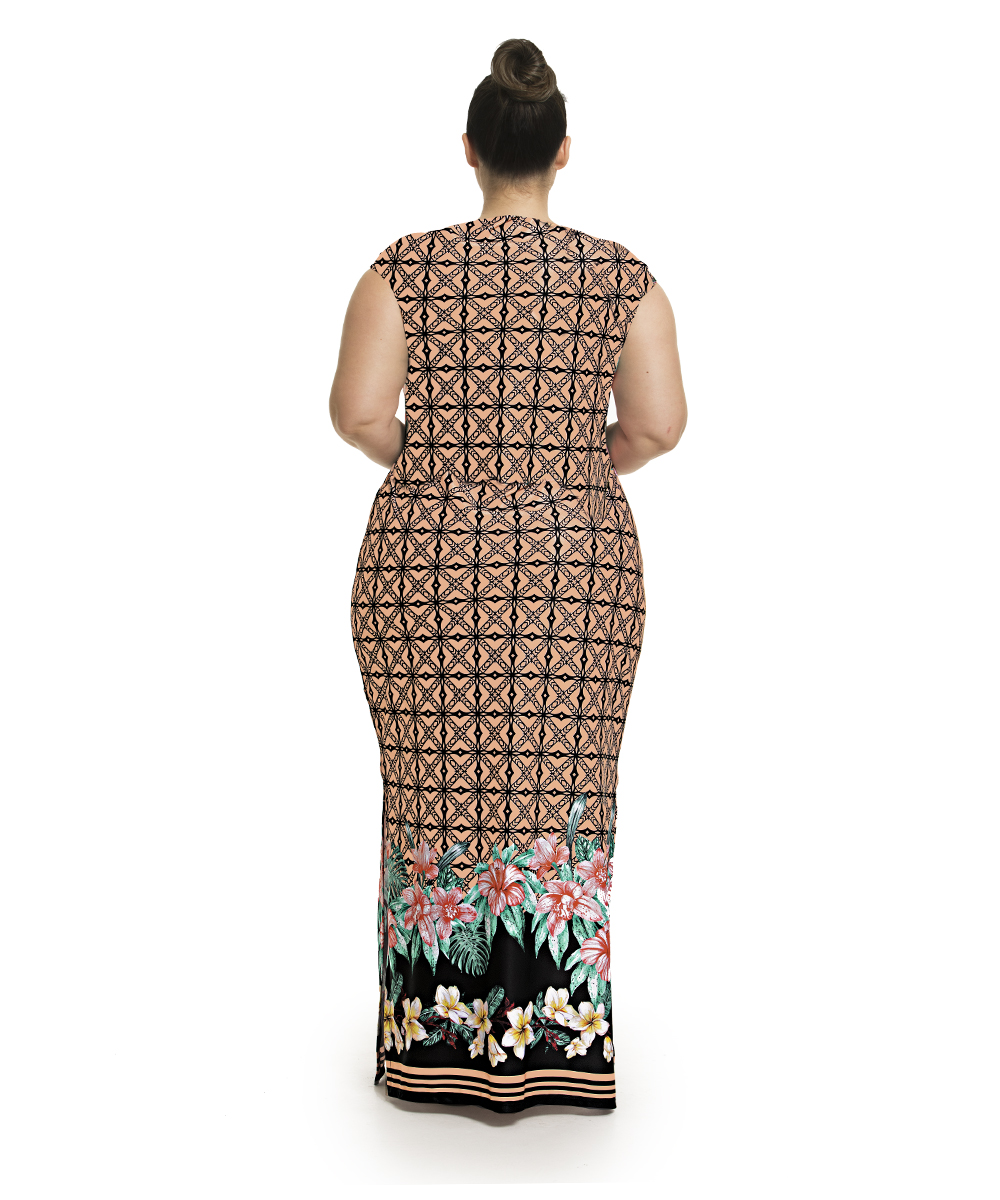Vestido em malha ribana e malha devorê