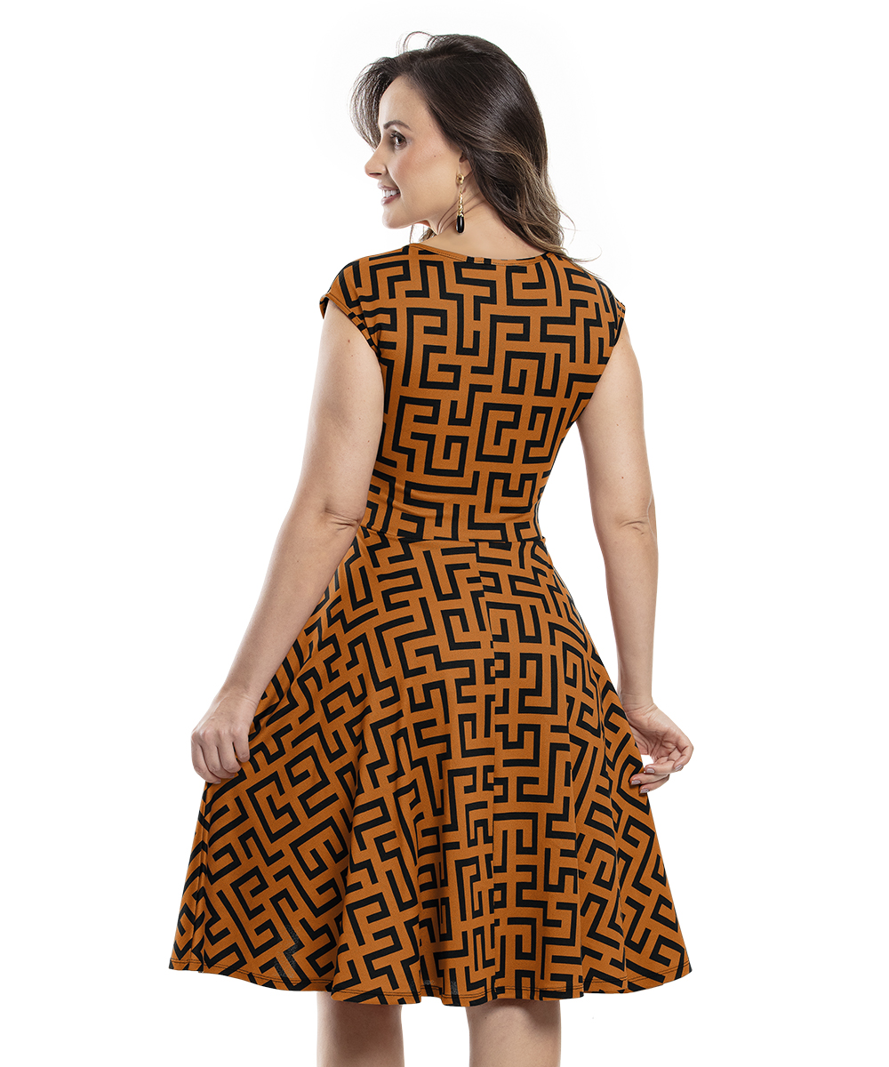 Vestido decote canoa, mangas copinho, drapeado abaixo da cintura, detalhe