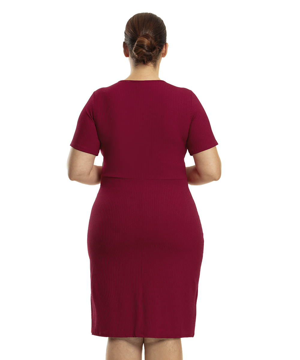 Vestido decote redondo, mangas curtas, possui detalhe de torção frontal