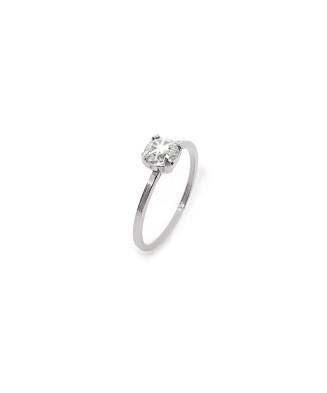 Anel Solitário Folheado a prata com strass