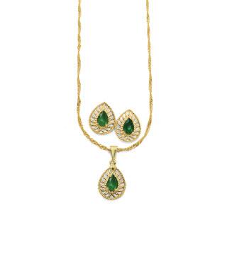 Conjunto de Brincos e Gargantilha Gotas Folheados a ouro com pedras sintéticas