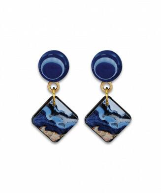Brincos Inusitado em madeira com resina e detalhes folheados a ouro