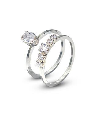 Conjunto com 2 Anéis Intenso Folheados a prata com zircônia