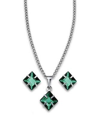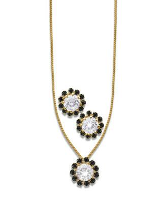 Conjunto de Brincos e Gargantilha Envolvente em aço inox com pedras sintéticas