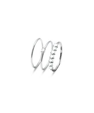 Conjunto com 3 Anéis de Falange Antenado Folheados a prata com strass
