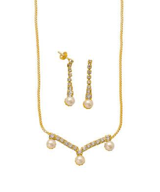 Conjunto de Brincos e Gargantilha Princesa Folheados a ouro com strass