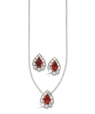 Conjunto de Brincos e Gargantilha Alucinante Folheados a prata com strass e