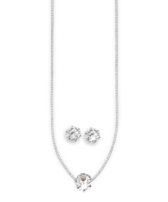 Conjunto de Brincos e Gargantilha Vibrações Folheados a prata com zircônia
