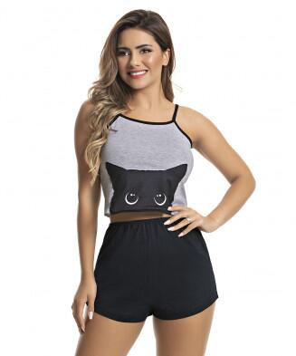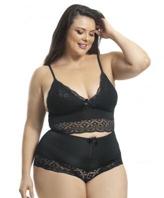 Conjunto (Top e caleçon) em poliamida e renda com elastano