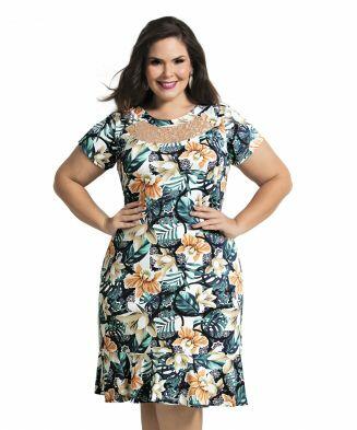 Vestido em malha crepe e renda