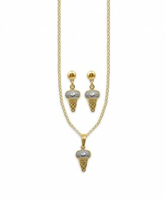 Conjunto de Brincos e Gargantilha Sorvete Folheados a ouro com ródio
