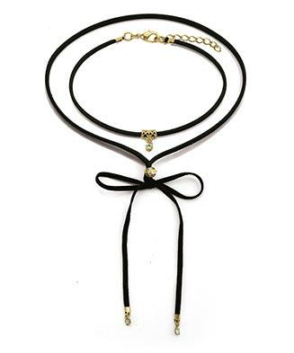 Cordão Design em camurça com detalhes folheados a ouro com strass