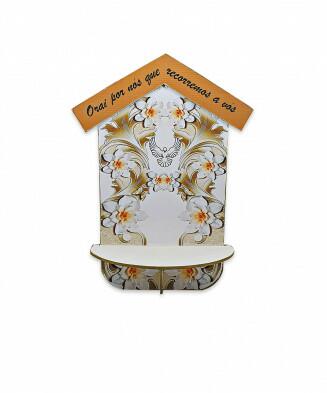 Oratório em mdf decorado "Orai por nós, que recorremos à vós"