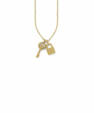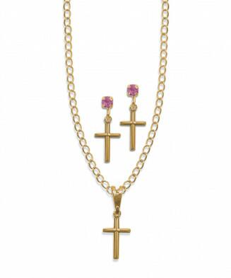 Conjunto de Brincos e Gargantilha Cross Folheados a ouro com strass