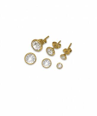 Conjunto com 3 pares de Brincos Luz Folheados a ouro com strass