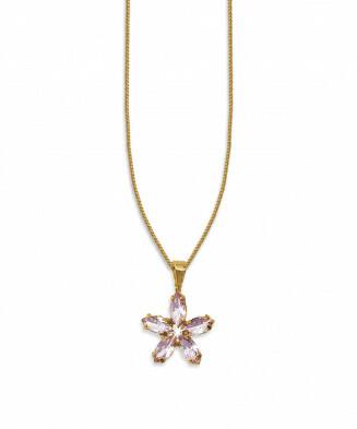 Gargantilha Flor Folheada a ouro com strass e pedras sintéticas