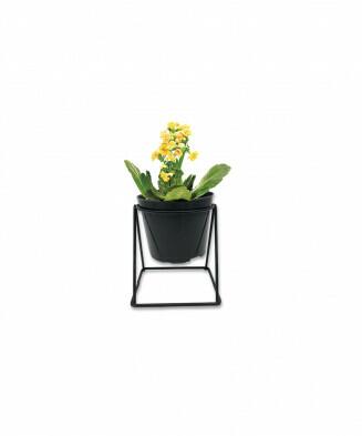Jogo vaso com prato em plástico e suporte em arame pintado