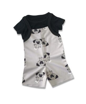 Conjunto 2 peças (Camiseta e jardineira) em malha de algodão