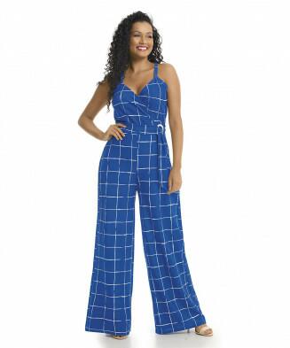 Macacão pantalona com transpasse em malha crepe