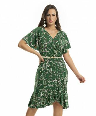 Vestido com transpasse em malha crepe