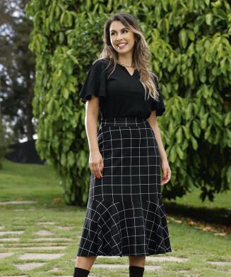 Conjunto 2 peças (Blusa cropped e saia em liganette)
