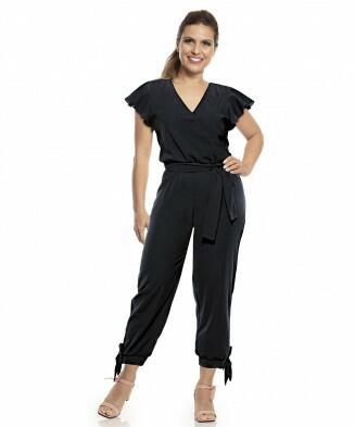 Macacão jogger com transpasse em tecido plano crepe bubble