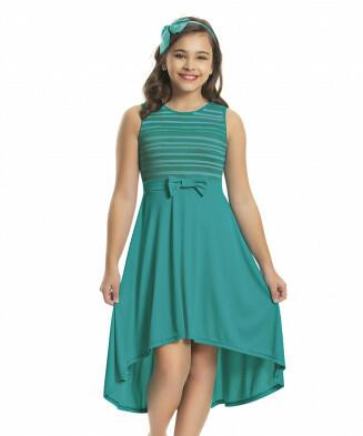 Vestido em helanca e malha listrada em poliéster