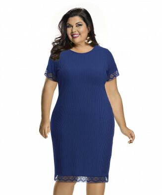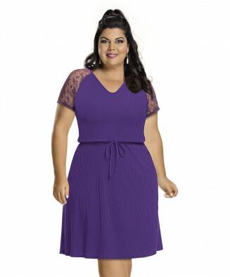 Vestido em malha ribana e renda