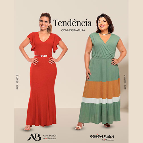 Moda Feminina, Plus Size, Clássica, Larc, Essencial, Narval, Pra Você, Fabiana Karla e Aline Barros: tudo o que suas clientes amam, reunido em uma coleção pensada para a estação mais vibrante do ano.