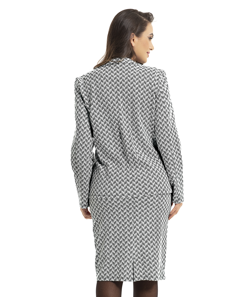 Blazer estampado clássico, feito em malha moletinho, com caimento perfeito e toque agradável à pele.