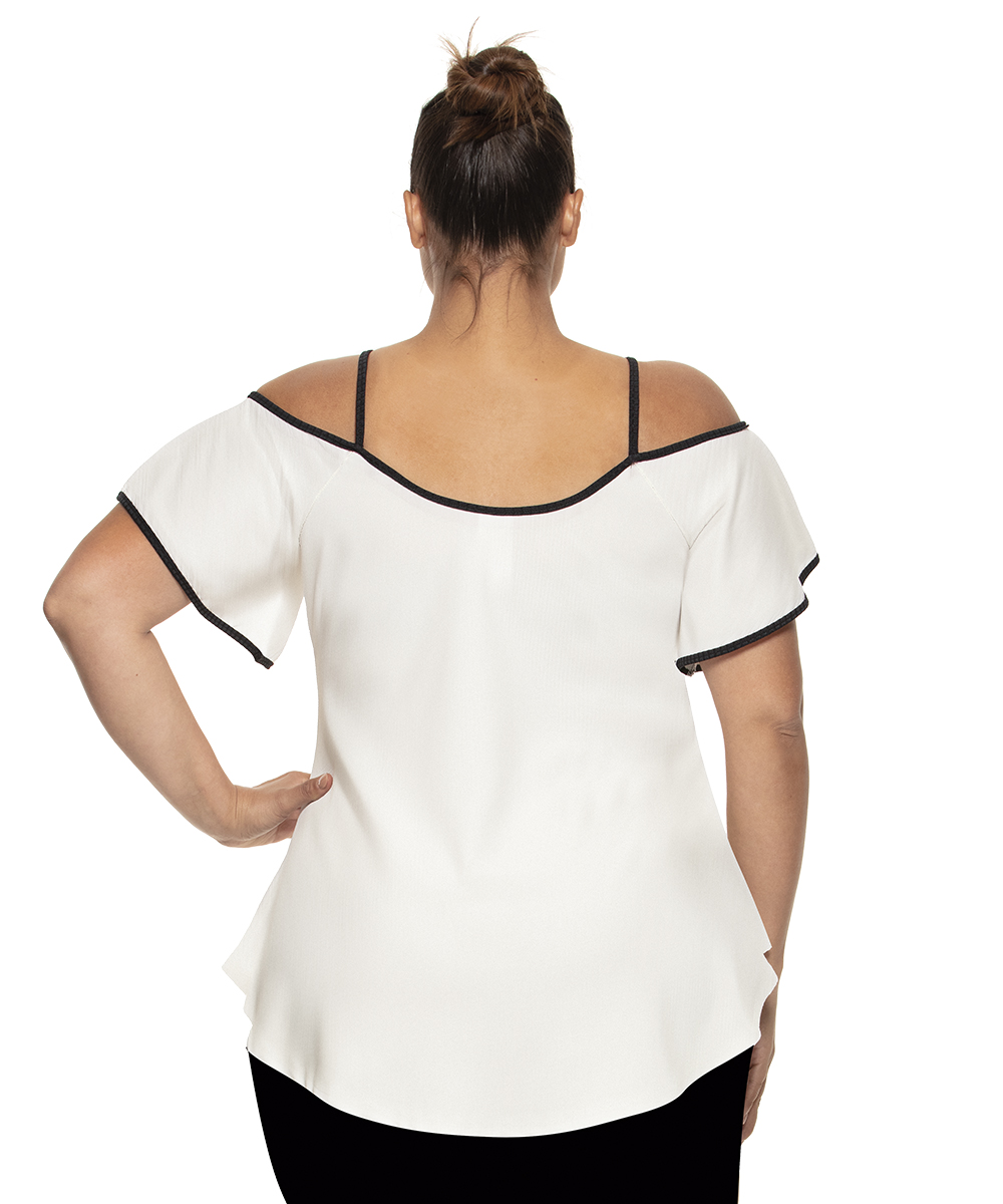 Malha crepe anarruga. Malha dupla, parte interna lisa e macia. Tecido