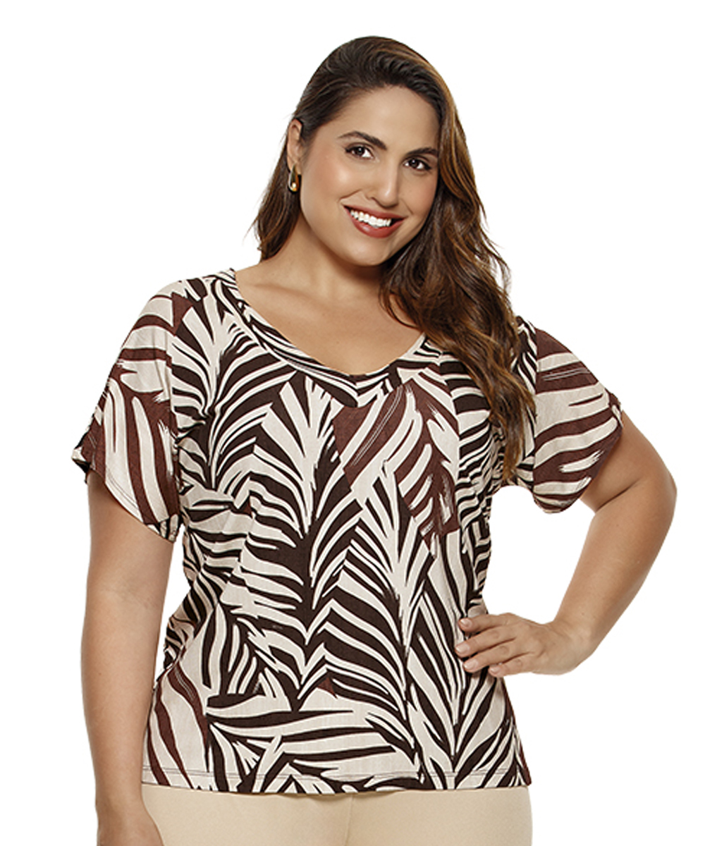 Viscose com elastano. Toque leve e macio. Ótimo caimento e muito conforto