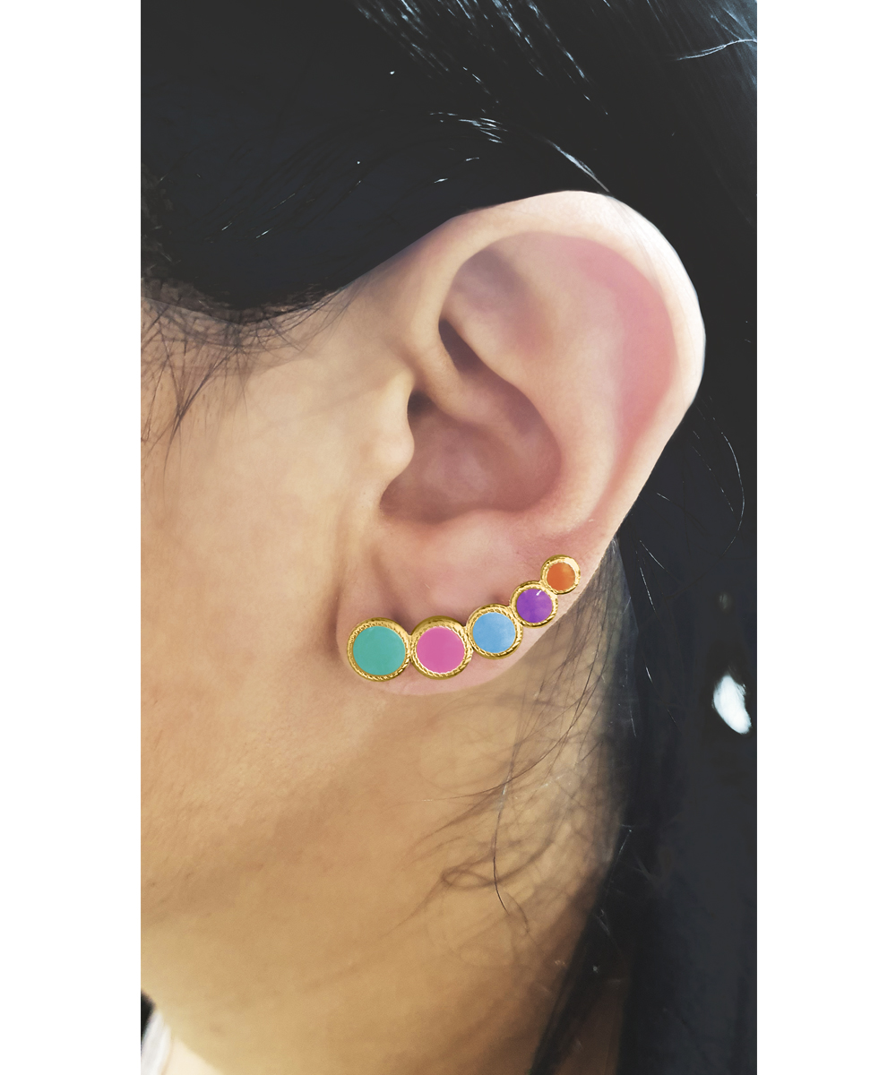 Brincos Colorido Folheados a ouro com resina