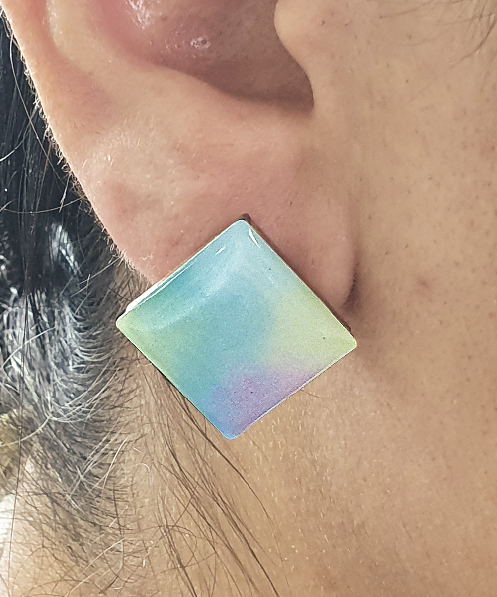 Brincos Tie Dye em madeira com resina e detalhes Folheados a ouro